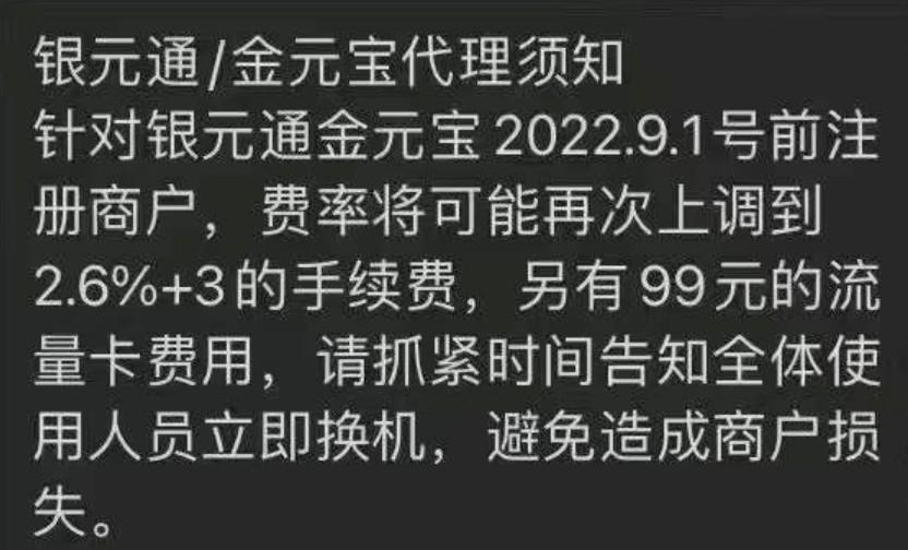 旗下銀元通、金元寶,2022年9月1日前注冊的商戶,流量費99元.