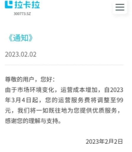 7月起,陸續對旗下部分用戶收取運營服務費99元。
