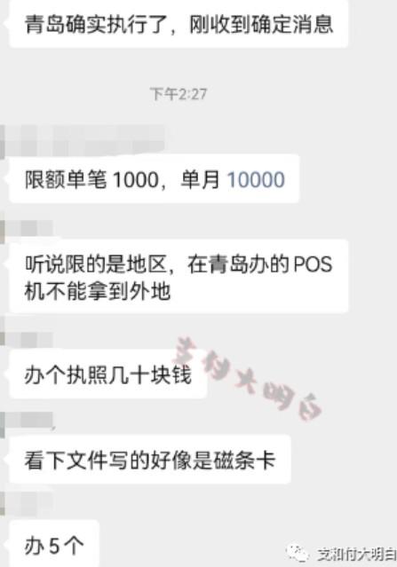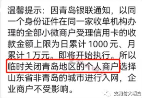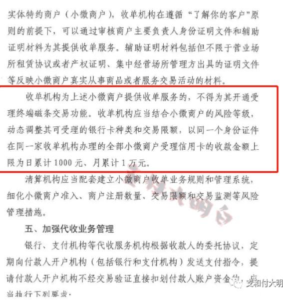 有代理商群發:以同一個身份證件在同一家收單機構辦理的全部小微商戶受理信用卡的金額上限日累計1000元,月累計1萬元,預計11月27開始執行。