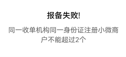 同一收單機構同一身份證注冊小微商進件戶不能超過2個