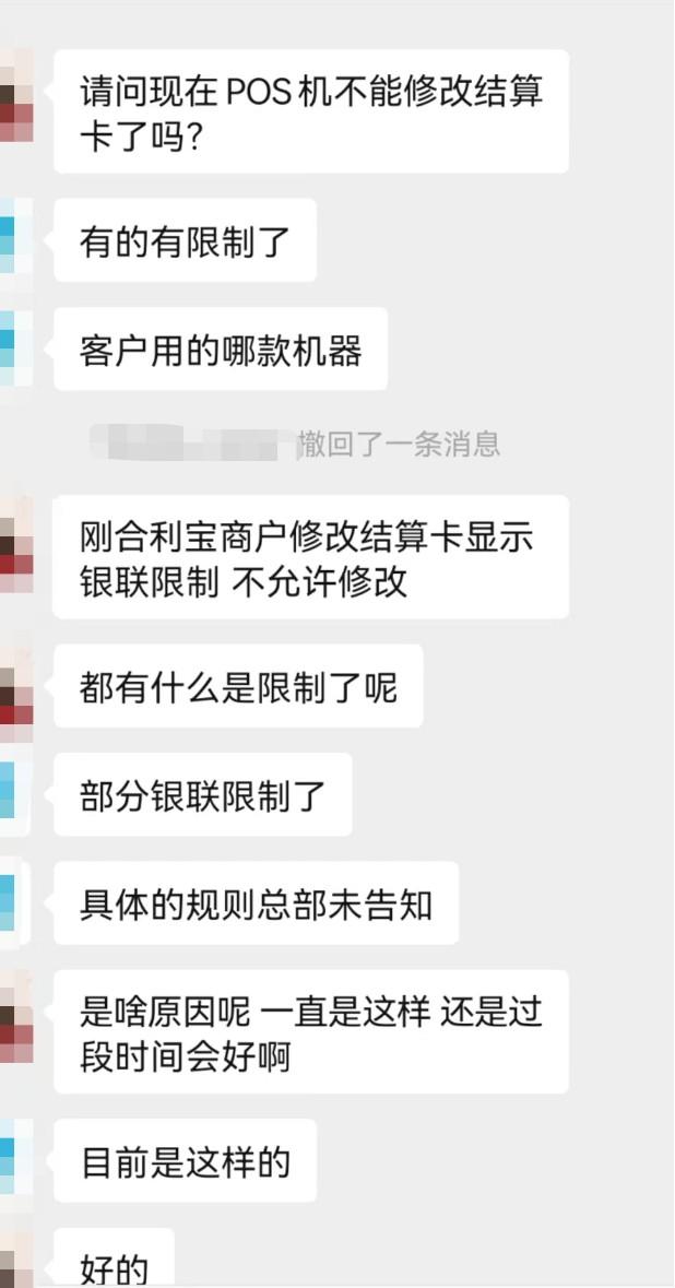 合利寶等多家POS被限制,無法修改結算卡