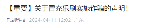 4月11日,樂刷發布“關于冒充樂刷實施詐騙的聲明!”