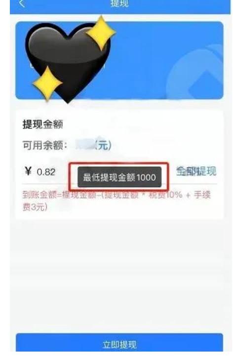 有代理商爆料,河北某2.0聯盟平臺,突然調整代理提現規則。代理商提現0.82元,后臺系統提示:最低提現金額1000,另外提示,到賬金額=提現金額-(提現金額*稅費10%+手續費3元)。