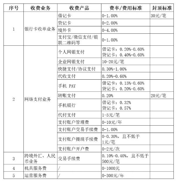 拉卡拉5月公示的收費項目及收費標準。數據來源:拉卡拉官方網站