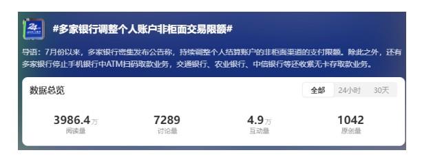 實際上近年來,隨著反詐壓力增大,銀行出臺的“取款2萬要向派出所報備”、“非柜面交易額度下調(diào)”等一系列賬戶監(jiān)管措施頻頻引發(fā)熱議,時不時就上個熱搜。