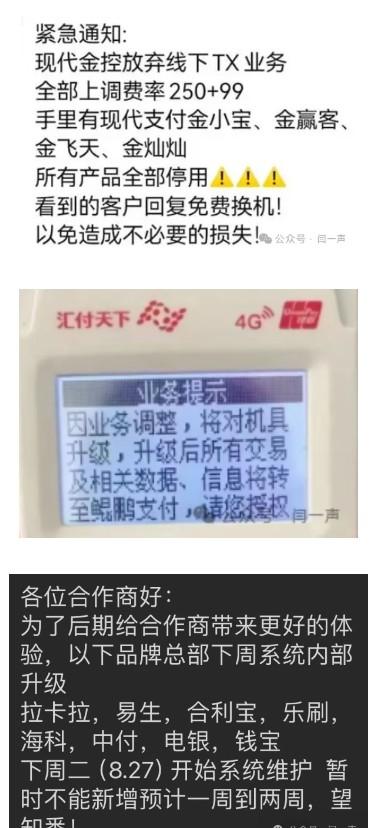 現代金控部分POS機商戶當天交易的不能秒到 拉卡拉 1年前 ( 2024-09-03 ) 469 近日,接到通知,現代金控部分POS機商戶當天交易的不能秒到,自動更改為了次日到賬T+1出款。請各位知悉。今年支付行業變動大,多家支付公司已經計劃退出TX市場,現代支付、匯付相繼轉型退出不合規的業務,銀聯又各種檢查支付公司,時不時暫停新增,代理商真的太難了。聽說還有多家支付公司要求小微商戶升級營業執照,已經下發了郵件通知。且刷且珍惜吧,未來怎么辦? The End 標簽:博主很懶,并沒有設置標簽