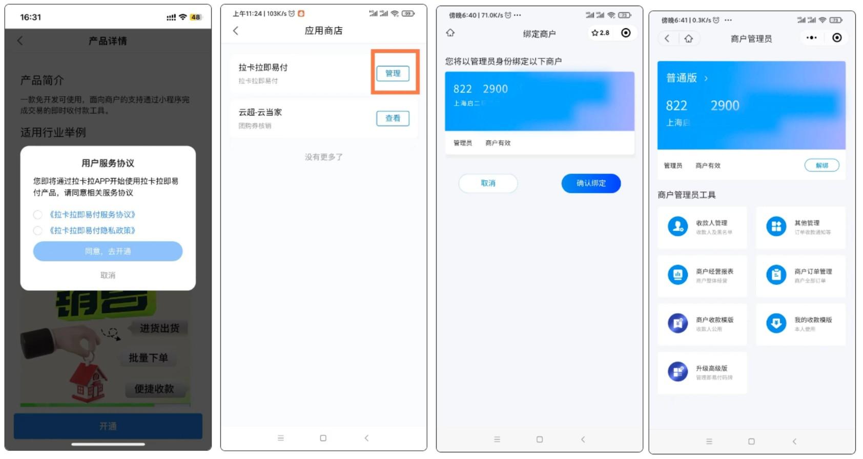 2,如果您已經是拉卡拉商戶,可通過拉卡拉錢包App直接開通即易付,具體操作詳情: