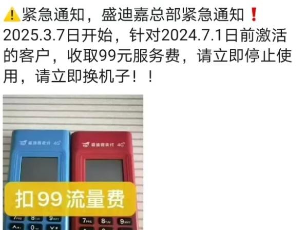 近日,代理商爆料稱,盛迪嘉總部緊急通知,2025.3.7日開始,針對2024.7.1日前激活的客戶,收取99元服務費!